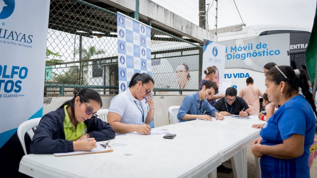 Por la salud de la mujer 💜AME Guayas y SOLCA, junto al Municipio de Lomas de Sargentillo, brindaron atención médica gratuita en el recinto Las Cañas, ofreciendo servicios como Papanicolaou, chequeo de mama y cultivo de secreción vaginal, fomentando la prevención y el bienestar.